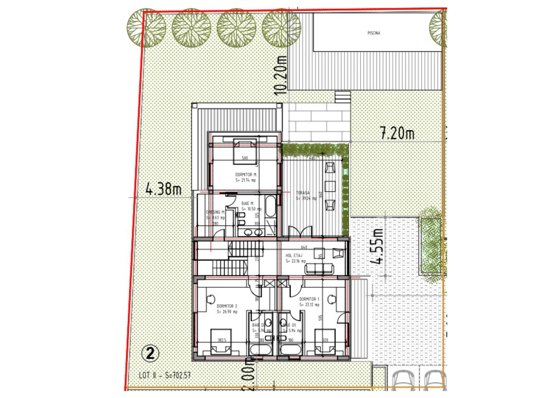 Vila 2 este o reședință contemporană concepută pentru viața de familie, cu zonă de zi amplă deschisă către terasă și grădină, circulații logice și dormitoare luminoase. Structura din beton armat, materialele certificate și execuția atentă asigură stabilitate și durabilitate pe termen lung. Confortul zilnic este susținut de încălzirea în pardoseală, tâmplăria performantă și climatizarea integrată, iar compartimentarea inteligentă oferă depozitări reale și un flux natural între bucătărie, dining și living.